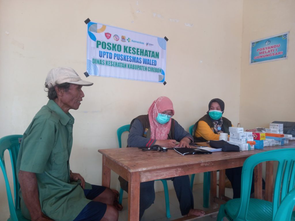 Posko kesehatan yang didirikan Puskesmas Waled langsung dipadati warga. Mereka menjalani pemeriksaan kesehatan setelah semalam bertahan di lokasi pengungsian.