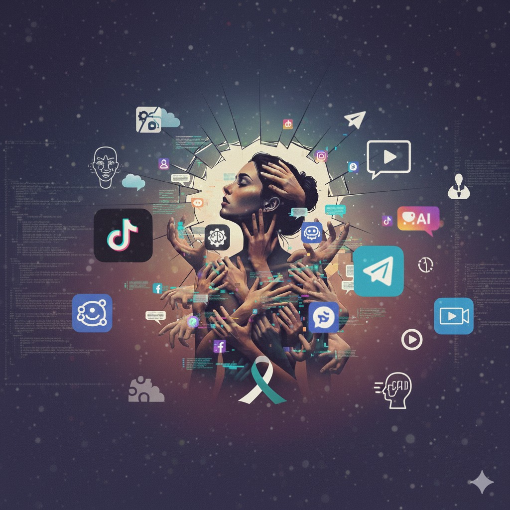 Sisi gelap kemajuan teknologi berdampak pada memperbesar kapasitas patriarki untuk mengontrol dan memanipulasi tubuh perempuan di ruang digital. (sumber ilustrasi gemini)