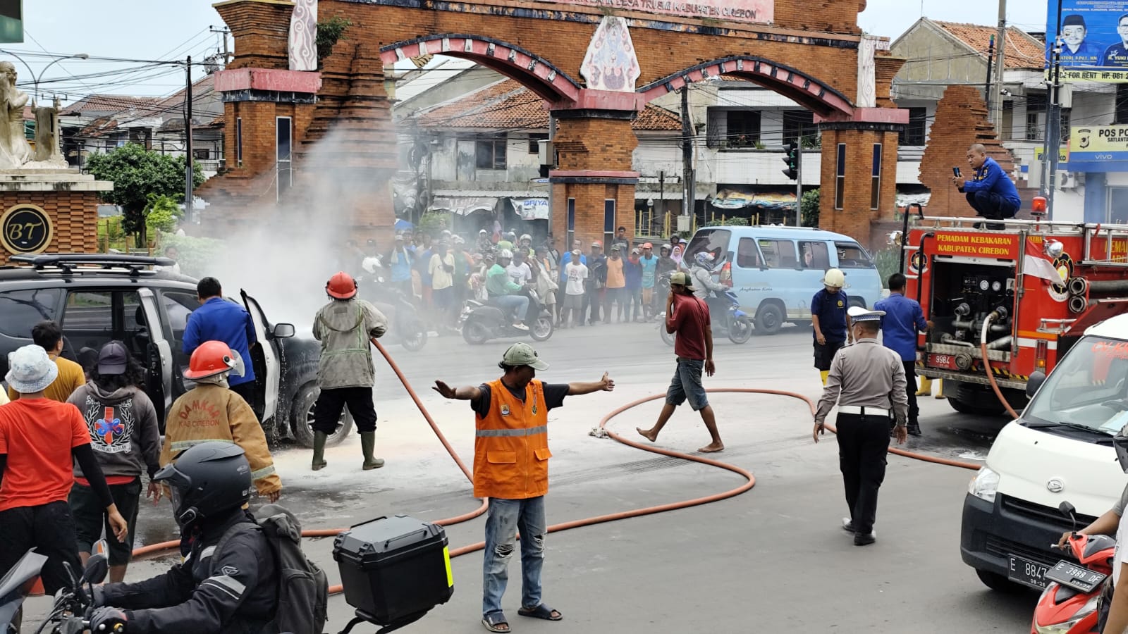 Mediacirebon.id – Mobil Avanza hitam terbakar di lampu merah Plered, Kabupaten Cirebon, Selasa (18/3/2025)