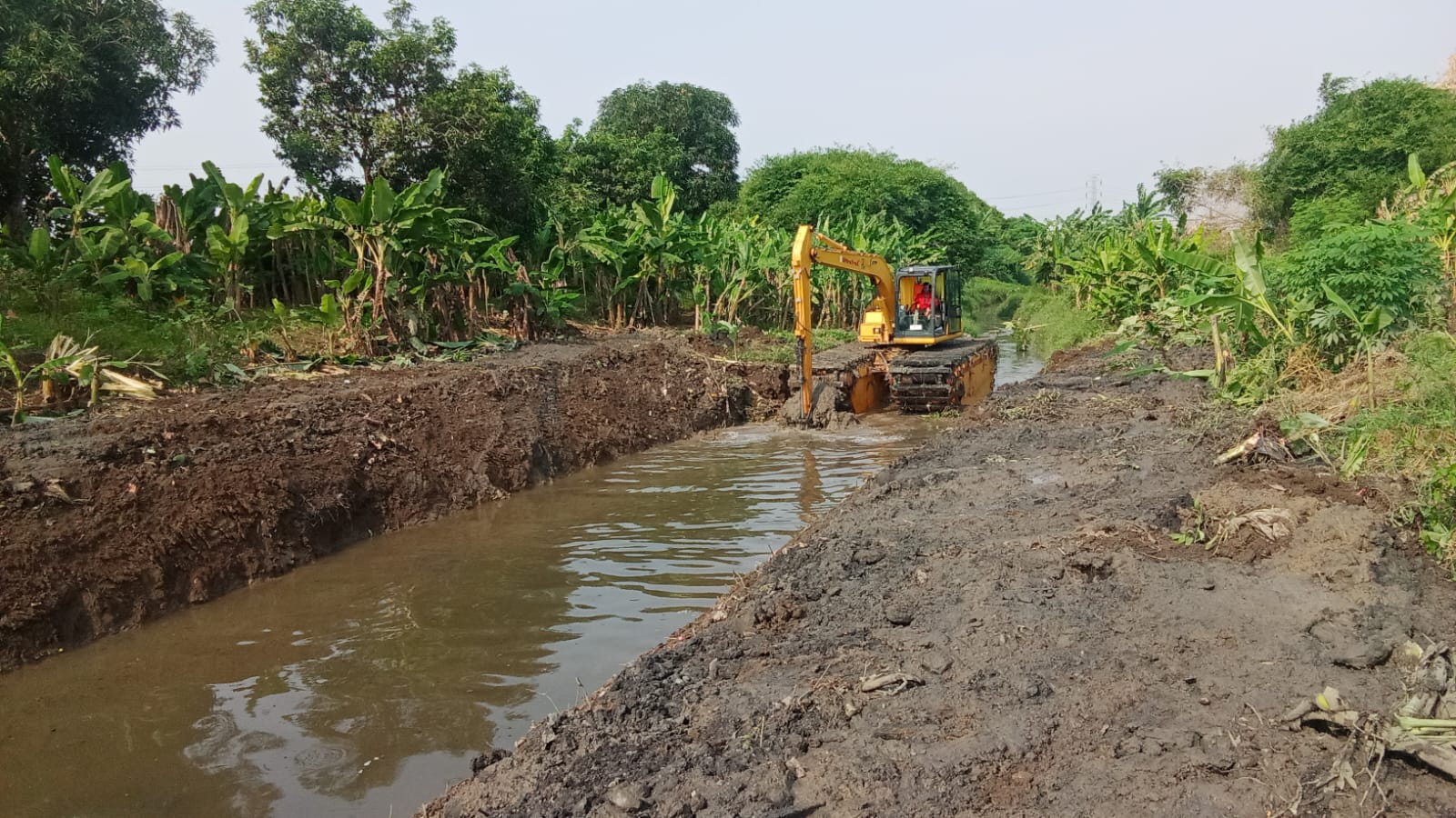 Total tambah Rachman sungai yang sudah dinormalisasi sepanjang 4.005 meter. Normalisasi menggunakan excavator dibantu pegawai di bidang Dinas Sumber Daya Air.