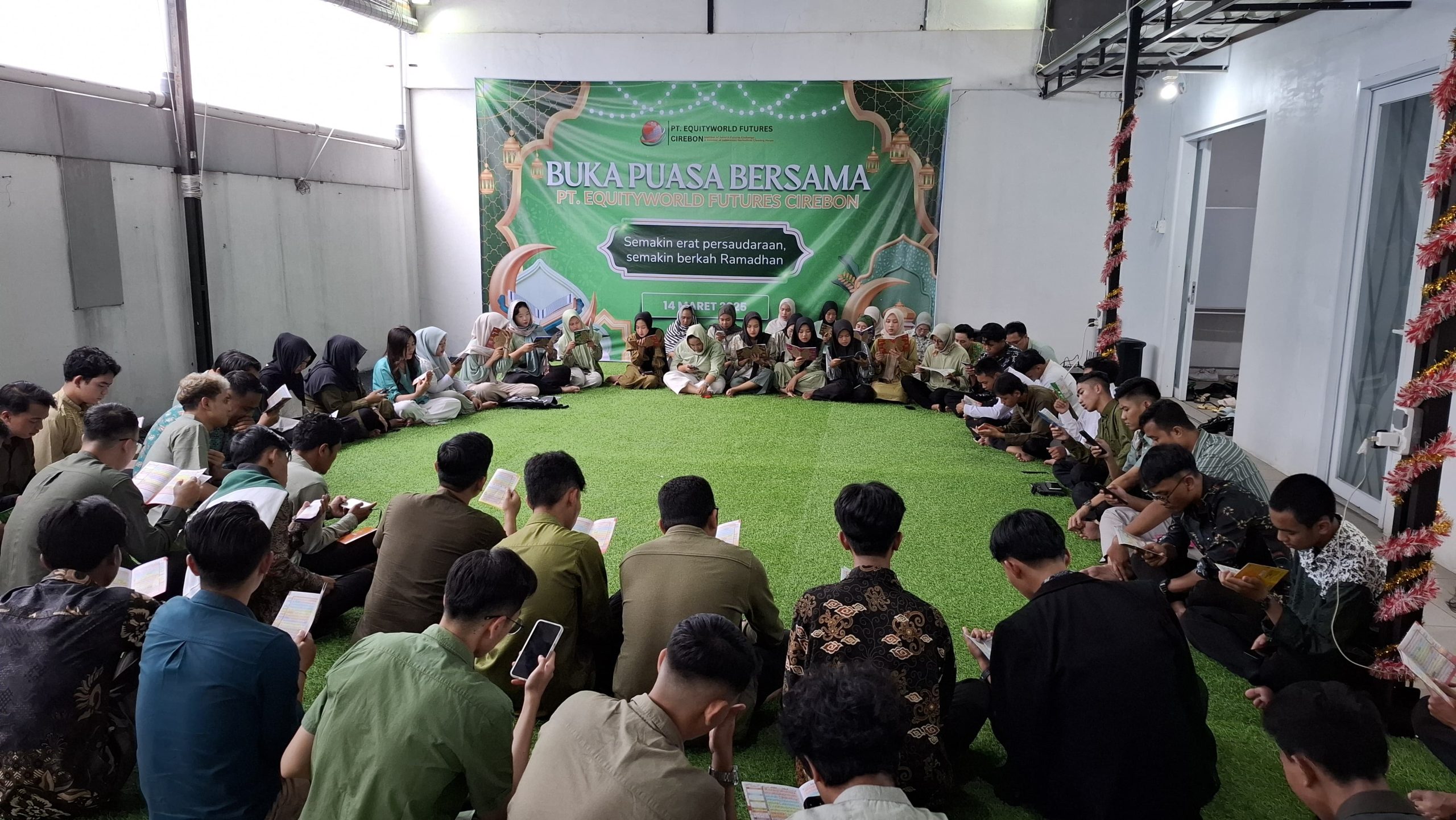 Kegiatan Buka Bersama seluruh karyawan PT Equityworld Futures Cirebon di lanjut dengan Tausiyah Keagamaan yang di pimpin oleh salah satu karyawan dari PT Equityworld Futures Cirebon guna untuk memberikan pencerahan, motivasi, dan penguatan nilai-nilai keislaman kepada seluruh karyawan PT Equityworld Futures Cirebon dan di lanjut dengan kegiatan buka puasa bersama.