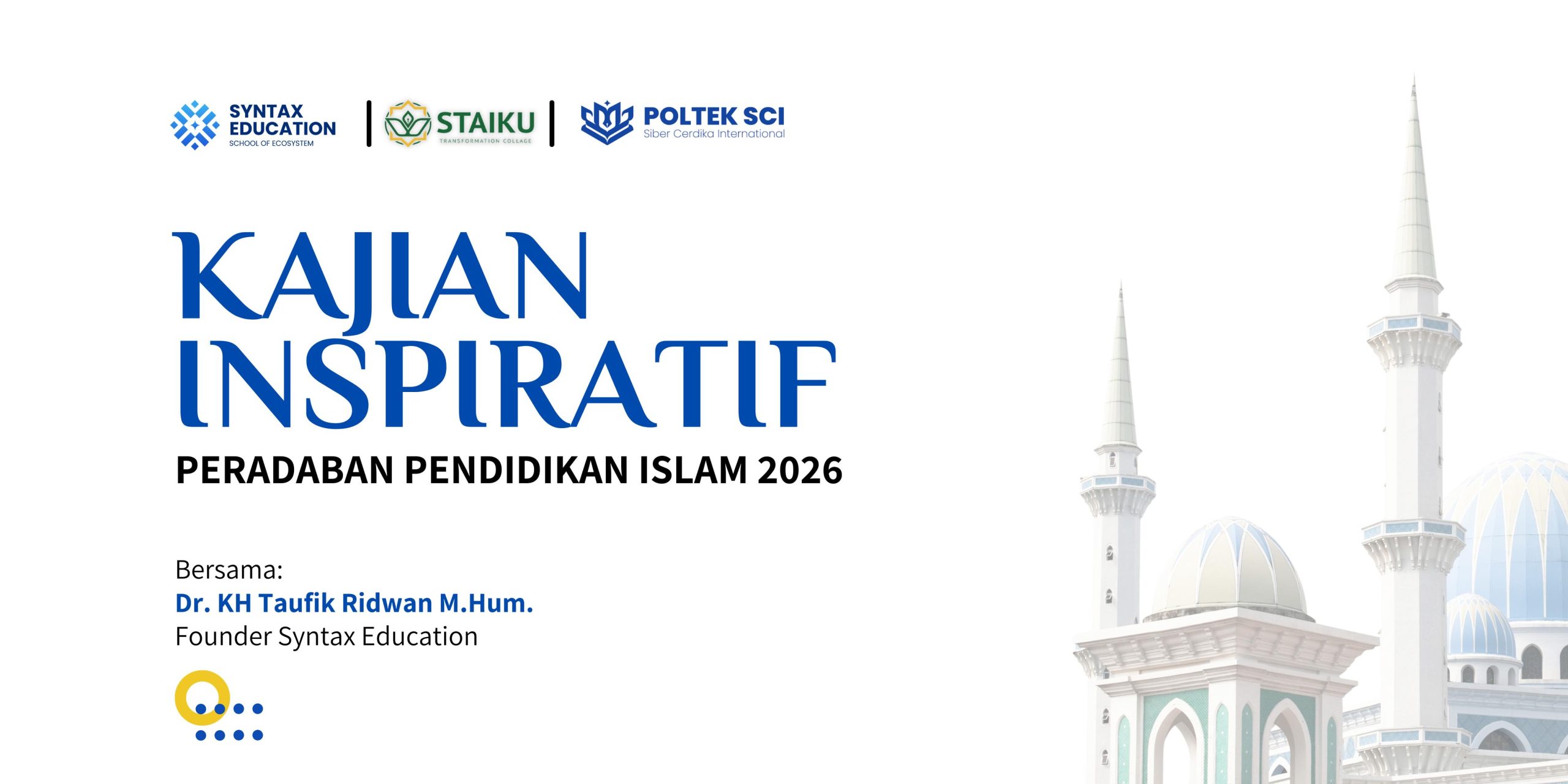 Mediacirebon.id – Peradaban besar tidak lahir dari kekosongan nilai. Ia tumbuh dari cara berpikir yang futuristik, namun tetap berakar kuat pada sejarah dan nilai luhur masa lalu. Inilah pesan utama yang disampaikan *Dr. KH. Taufik Ridwan, M.Hum,* Founder Syntax Education, dalam *Kajian Inspiratif* bertema *“Peradaban Pendidikan Islam 2026”* yang digelar secara daring melalui Zoom pada hari Jum’at, 9 Januari 2026 dan diikuti oleh talent Syntax Education, dosen Politeknik SCI, serta dosen STAIKU.