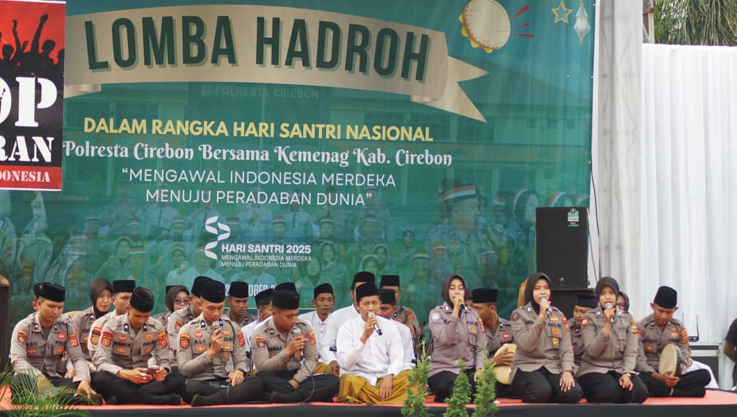 Mediacirebon.id – peringatan Hari Santri Nasional 2025 diisi dengan lomba hadroh dan sunatan massal yang diikuti oleh 70 kelompok hadroh dari berbagai pondok pesantren serta 150 peserta khitanan di Mapolresta Cirebon Selasa (21/10/2025)