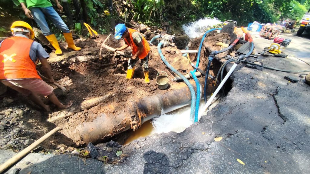 “Tekanan kendaraan yang melintas di jalan Pelangon hampir setiap hari dan usia yang lebih dari 50 tahun menyebabkan pipa jebol,” kata Opang panggilan akrabnya.